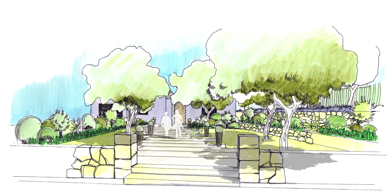 Ce jardin repose sur un coteau exposé au nord. Il s’agit d’un terrain en restanque accueillant une oliveraie. A l’instar du projet architectural, le jardin se veut à la fois provençal et contemporain. Ainsi, les masses végétales méditerranéennes s’allient à des formes contemporaines et la pierre s’allie le béton et le bois. Deux zones ont fait l’objet d’un travail en finesse, l’entrée pietonne marquée par les oliviers et le patio dans lequel est positionné un mur d’eau ainsi qu’un bassin planté d’espèce hygrophiles.