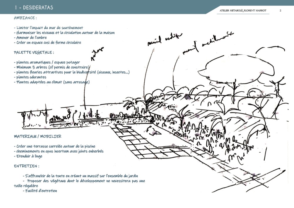 Voici un type d’étude paysagère dont le format concis et synthétique aboutit à des projets précis, qualitatifs et dans des délais raisonnables. Ces études peuvent ensuite être soumises à des entrepreneurs du paysages et autres artisans afin d’obtenir un chiffrage efficace du chantier qui aura été préalablement pensé dans sa globalité. Faites appel à notre expertise réaliser des projets sur mesure, faciliter vos chantier ainsi que l’articulation des différents corps de métiers.